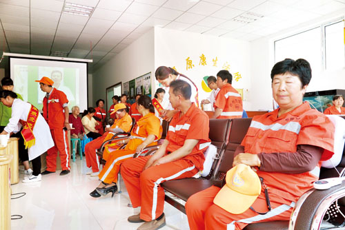 無(wú)論酷暑或是嚴(yán)寒,疾風(fēng)或是暴雨,環(huán)衛(wèi)工人都一如既往地做著城市的清掃和保潔工作,城市的每一份潔凈都有著他們的付出。環(huán)衛(wèi)工人的工作性質(zhì)使他們可能存在頸肩腰腿風(fēng)濕等健康問(wèn)題,6月2日,忻州復(fù)原康生活館為他們送上了免費(fèi)理療卡,以理療的方式幫助有需要的環(huán)衛(wèi)工人改善健康狀況,表達(dá)了他們對(duì)環(huán)衛(wèi)工人的敬意和關(guān)愛(ài)。圖為環(huán)衛(wèi)工人在進(jìn)行按摩理療 實(shí)習(xí)記者 許凈 攝
