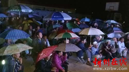演出期間,記者觀察到,每場演出前,村民們都早早地搬凳子帶椅子到戲院等著看戲,十里八鄉(xiāng)的群眾也接踵而至。特別是最后一場戲晚上八點開演,雨提前半小時下起來都擋不住村民們趕來看戲的腳步,戲院里站的、坐的、蹲的……四處都是人。