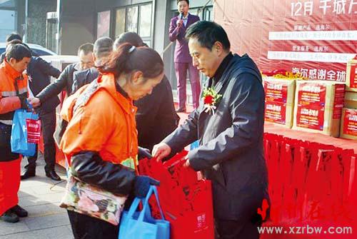 本報(bào)訊12月9日,我市環(huán)衛(wèi)工人領(lǐng)到海爾專賣店贈(zèng)送的冬季防寒用品。隨著較強(qiáng)冷空氣帶來的降溫,忻州城區(qū)氣溫急轉(zhuǎn)直下。當(dāng)天上午,忻州海爾專賣店為現(xiàn)場(chǎng)50余名環(huán)衛(wèi)工人代表發(fā)放了“ 防寒禮包”,給冬日里工作在一線的“馬路天使”們送來了一份溫暖。同時(shí),還將一個(gè)大蛋糕分送給環(huán)衛(wèi)工人,為他們送上了特別的關(guān)懷。