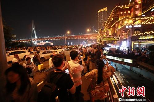 圖為“五一”小長(zhǎng)假期間,游客在重慶洪崖洞景區(qū)觀光游玩。中新社發(fā) 蘇自剛 攝