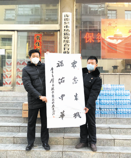 近期新冠肺炎疫情牽動(dòng)著全國(guó)人民的心。遠(yuǎn)在他鄉(xiāng)的保德籍中國(guó)著名書(shū)法家韓雄平先生也時(shí)刻牽掛著家鄉(xiāng)一線抗疫工作人員。他特意委托他的弟弟韓旭平于2月9日將“眾志成城,福佑中華”書(shū)法作品及慰問(wèn)品送給奮戰(zhàn)在抗疫一線的工作人員。 本報(bào)通訊員 攝影報(bào)道