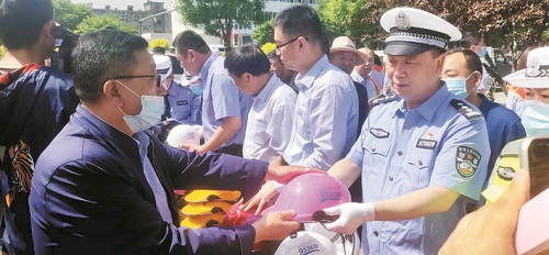 本報(bào)訊 為最大限度減少因交通事故造成的人員傷亡,5月14日,市公安局交警支隊(duì)聯(lián)合市保險(xiǎn)業(yè)協(xié)會(huì)、太平洋保險(xiǎn)忻州分公司和城區(qū)快遞、外賣(mài)企業(yè),舉辦以“一盔一帶”為主題的警企聯(lián)合勸導(dǎo)活動(dòng),在進(jìn)行安全宣傳的同時(shí),為途經(jīng)的騎行市民發(fā)放安全頭盔。對(duì)駕乘摩托車不佩戴頭盔、駕乘車輛不按規(guī)定佩戴安全帶的交通違法行為進(jìn)行勸導(dǎo),積極倡導(dǎo)市民在騎電動(dòng)自行車時(shí)佩戴頭盔。