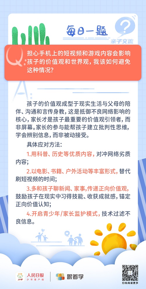 | 每日一題丨家長該如何避免手機(jī)上的內(nèi)容影響孩子的價(jià)值觀和世界觀? |