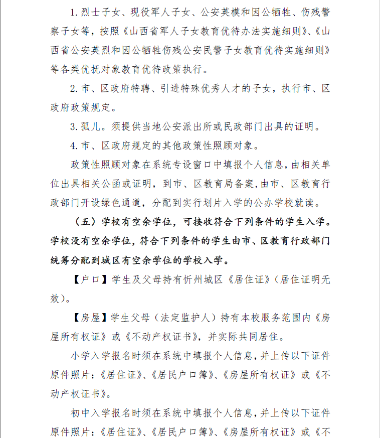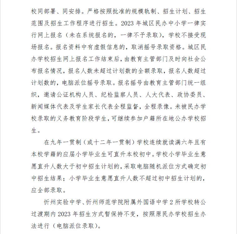 (四)8月8日,忻州市教育局統(tǒng)一組織忻州市北方中學(xué)、忻州現(xiàn)代雙語學(xué)校、忻州市康樂小學(xué)、忻州師范學(xué)院附屬外國語中學(xué)、忻州實(shí)驗(yàn)中學(xué)五所學(xué)校進(jìn)行搖號,并及時(shí)公布錄取結(jié)果。8月9日至10日,辦理入學(xué)手續(xù)。