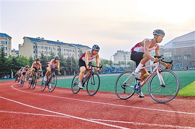 圖為8月10日,在山東省青州市旗城教育集團的操場上,學(xué)生們開展自行車訓(xùn)練。王繼林?jǐn)z(人民視覺)