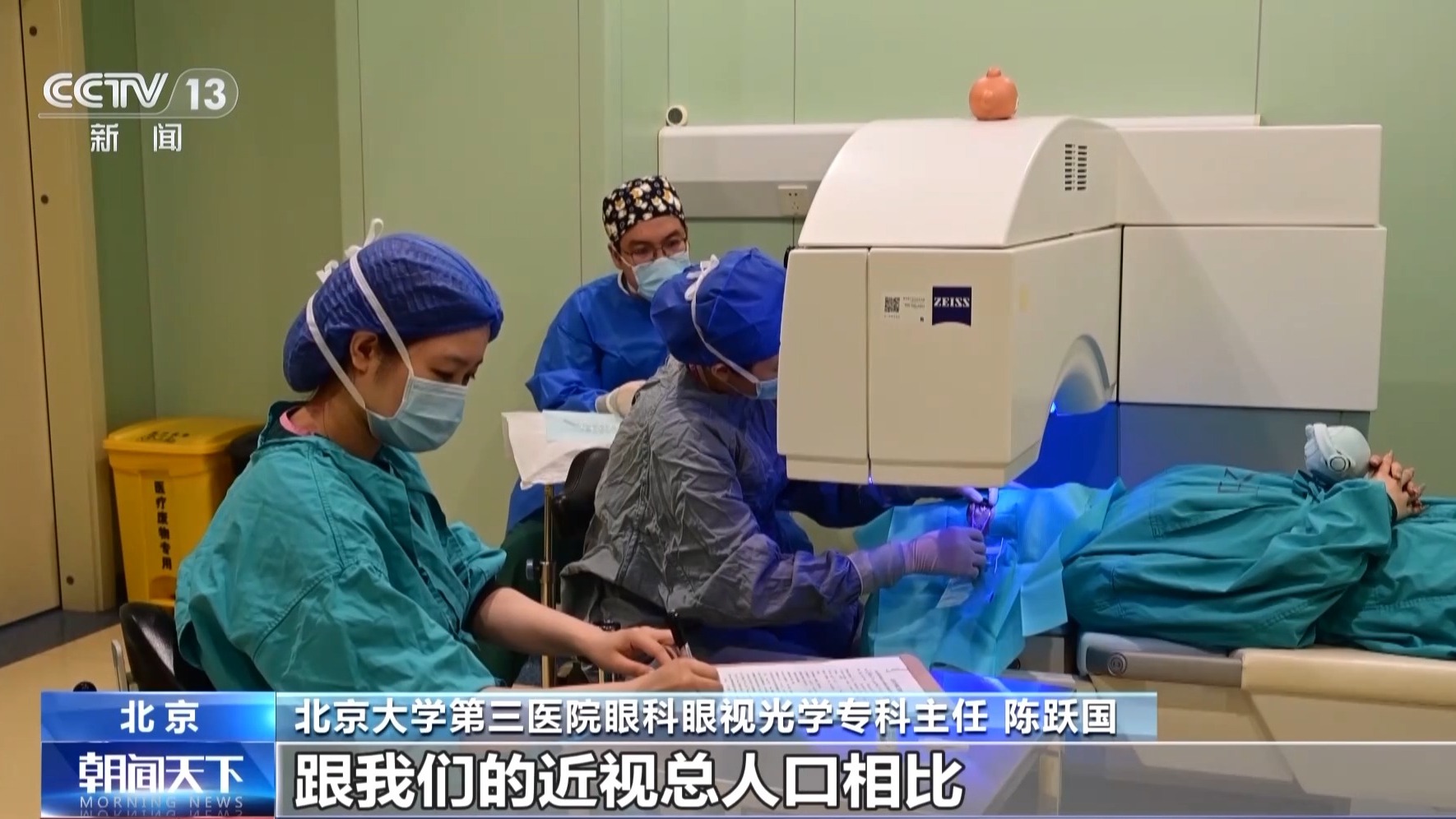 北京大學(xué)第三醫(yī)院眼科眼視光學(xué)??浦魅?陳躍國:每年近視矯正手術(shù)全世界大概是500萬例到600萬例,其中20%我們國內(nèi)應(yīng)該在150萬臺以上,跟我們的近視總?cè)丝谙啾绕鋵嵾€是微乎其微的,不到1%。做手術(shù)并不是目前進行近視矯正的一個主流,主流還是戴鏡。