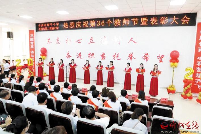 通過表彰先進(jìn),樹立典型,進(jìn)一步增強(qiáng)了教師們的光榮感、責(zé)任感和使命感,激勵(lì)全體教師愛崗敬業(yè)、擔(dān)當(dāng)實(shí)干,促進(jìn)教師隊(duì)伍素質(zhì)整體提升?!耙黄ば挠依睿咧v臺寫春秋”。教師節(jié)慶祝大會在第二實(shí)驗(yàn)小學(xué)新教師舞蹈《我們都是追夢人》中落下帷幕。