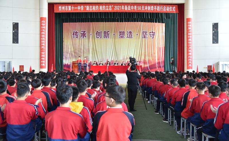 又是一年五月,陽光明媚,又逢“五四”,血脈僨張。在五月的花海中擁抱青春的時(shí)代,在初升的太陽下點(diǎn)燃生命的未來。為進(jìn)一步激發(fā)初三師生堅(jiān)定目標(biāo)、奮力拼搏、沖刺中考的雄心壯志,5月4日上午,忻州市第十一中學(xué)初三年級(jí)全體師生在學(xué)校文體藝苑舉行了“勵(lì)志相約、相約立志”2021屆備戰(zhàn)中考50天沖刺牽手踐行啟動(dòng)儀式,校長(zhǎng)張?jiān)崎L(zhǎng)、黨支部書記趙智剛、學(xué)校領(lǐng)導(dǎo)、部分家長(zhǎng)代表共同見證了這一振奮人心的時(shí)刻。