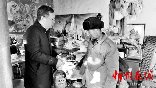 農(nóng)行忻州分行黨委書記、 行長白建斌為貧困戶送去慰問品。