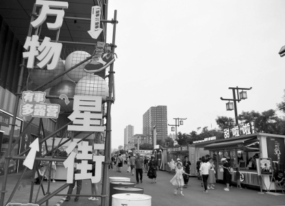 傍晚時分,狹長的夕陽陰影下,太原解放路上白天的悶熱慢慢散去,有了些許清涼。萬達(dá)廣場上人聲喧鬧,又是一番火熱景象。以萬達(dá)廣場為中心的商圈,是太原城北最繁華的地段。進(jìn)入6月,萬達(dá)廣場前空地上的萬物星街開啟,沿路一字排開的攤位上,商品琳瑯滿目,人流如織,熱鬧非凡。
