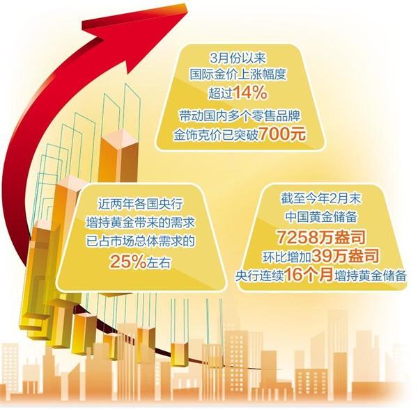 市場分析人士認為,今年以來,在美聯儲貨幣政策確定轉向的背景下,疊加近期地緣政治沖突激化,以及全球多國央行對黃金的持續(xù)需求,多因素共同推動了國際金價的強勁上漲。