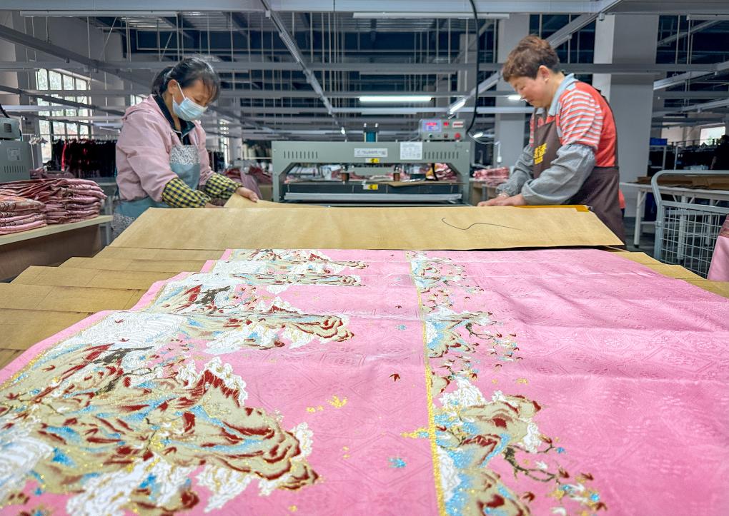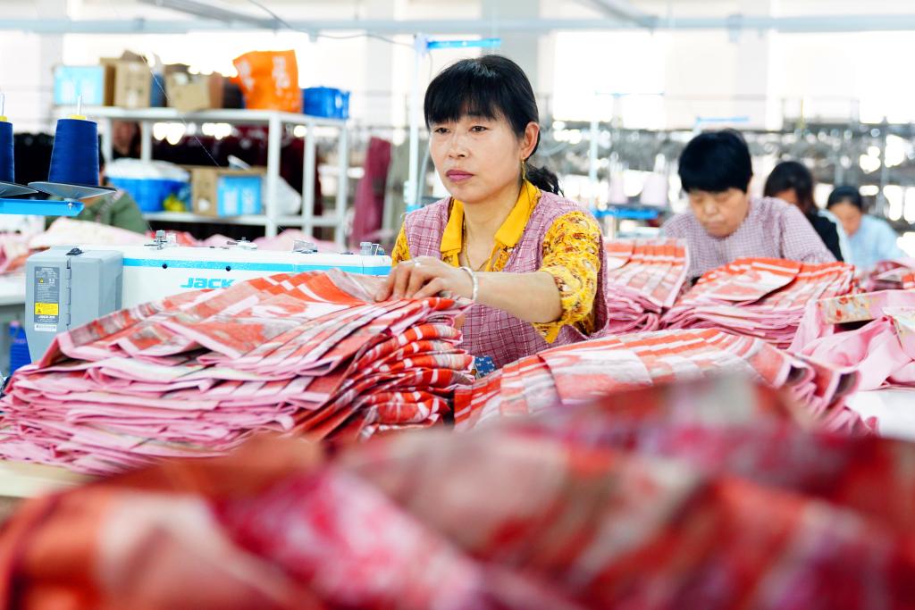 4月13日,在曹縣有愛云倉漢服基地,工作人員在加工馬面裙。新華社記者 郭緒雷 攝