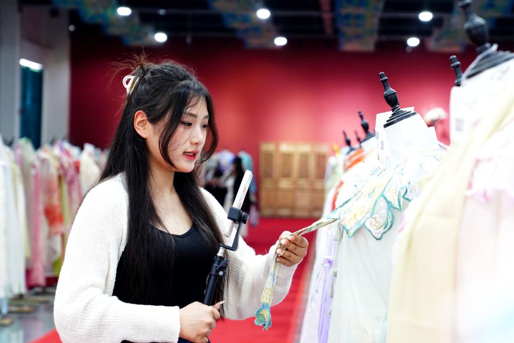 “85后”的黃曉燕曾在南方打拼十余年,如今成為曹縣穿越大唐漢服云倉經(jīng)理?!半m然是在鄉(xiāng)鎮(zhèn)工作,但貼近市場(chǎng),節(jié)奏非常快,每天顧客絡(luò)繹不絕。”她在展廳里邊走邊介紹,公司自主設(shè)計(jì)的漢服涵蓋唐、宋、明、清等品類,并根據(jù)人們?nèi)粘Vb特點(diǎn)加以改良。在這里,不僅能夠私人訂制服裝,還有AI直播改善線上消費(fèi)體驗(yàn)。