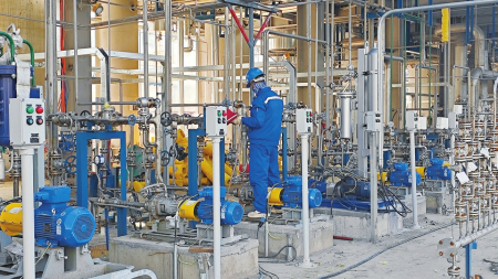制造“綠色”,更要“綠色”制造。在廠區(qū)內(nèi),循環(huán)水站、凈水廠、污水站等廢棄物處理區(qū)早已拔地而起,進(jìn)入試運(yùn)行環(huán)節(jié)。“廠區(qū)所產(chǎn)生的廢氣經(jīng)過DFTO處理達(dá)標(biāo)排放,廢固由資質(zhì)單位集中回收處理,污水經(jīng)過凈水處理、回用水裝置回收循環(huán)利用,可實(shí)現(xiàn)零排放。另外,還充分回收利用了開發(fā)區(qū)內(nèi)的新石能源公司產(chǎn)生的焦?fàn)t氣作為燃料,讓綠色環(huán)保貫穿產(chǎn)品始終?!表?xiàng)目工程師張宏偉介紹道。