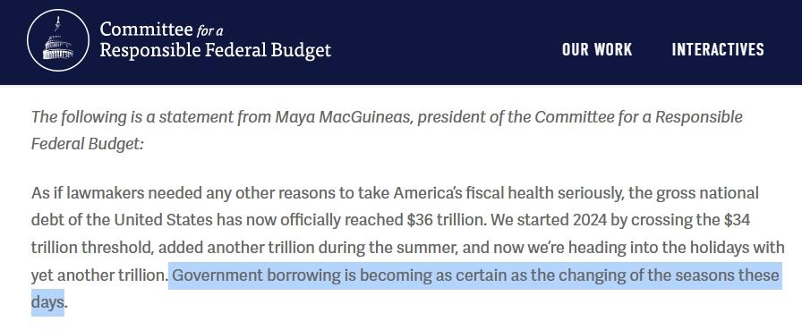 聯(lián)邦預(yù)算問責(zé)委員會(huì)主席馬婭·麥吉尼亞斯在發(fā)言稿中直言:“如今,美國(guó)政府借款正變得像季節(jié)的變化一樣規(guī)律而確定。”