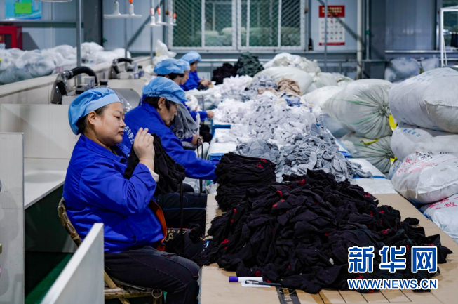 代縣扶貧產業(yè)園區(qū)雁弘紡織有限公司內,搬遷后的群眾實現(xiàn)了家門口就業(yè)。新華網(wǎng) 發(fā)