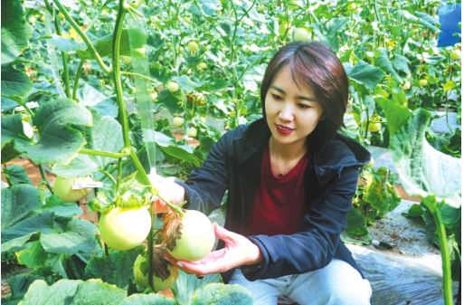 游客正在采摘甜瓜。郗宏光攝