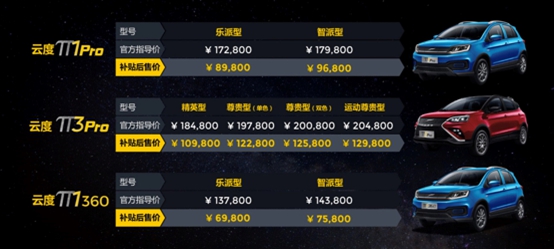 7月29日,搭載全新寧德時(shí)代VDA車規(guī)級電芯的云度π1 PRO、π3 PRO正式上市發(fā)售,其中,云度π1 PRO最大續(xù)航里程突破526公里,NEDC綜合工況續(xù)航里程達(dá)402公里。云度π3 PRO最大續(xù)航里程突破500公里,NEDC綜合工況續(xù)航里程達(dá)360公里,推動(dòng)國內(nèi)純電動(dòng)SUV消費(fèi)升級到500+時(shí)代。此次云度新能源聯(lián)合寧德時(shí)代等世界一流供應(yīng)商,推出兩款長續(xù)航電動(dòng)SUV,超過500公里的最大續(xù)航及30分鐘極致快充,將為電動(dòng)消費(fèi)者日常出行帶來實(shí)質(zhì)性的提升和顛覆,徹底打消普通消費(fèi)者對新能源的里程焦慮,激發(fā)又一輪新能源汽車消費(fèi)熱潮。 除了π1 PRO和π3 PRO外,此次云度新能源上市的新車還包括云度π1-360,進(jìn)一步降低電動(dòng)SUV購車門檻,讓電動(dòng)科技帶來的出行便利普惠大眾,具體如下: