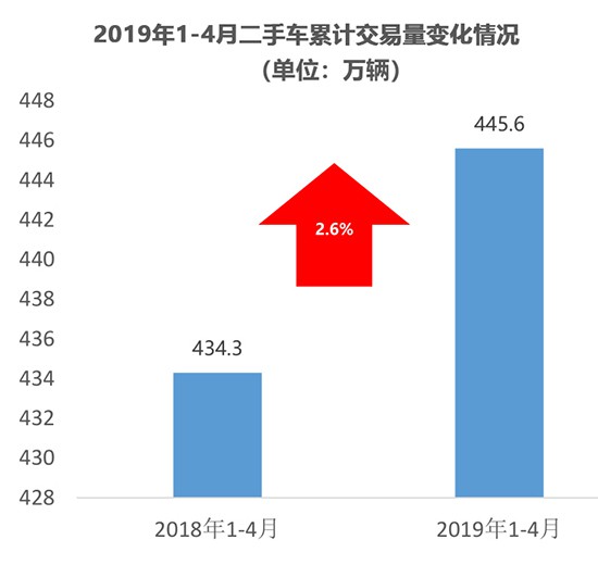 二手車方面,4月全國二手車市場(chǎng)交易量為120.06萬輛,環(huán)比下降4%,同比增長(zhǎng)4.29%;1-4月,二手車?yán)塾?jì)銷售445.63萬輛,同比增長(zhǎng)2.61%。