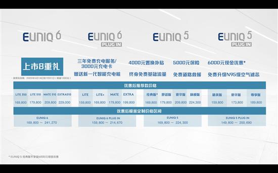 5月18日,上汽MAXUS EUNIQ 5和EUNIQ 6兩款車型正式上市,其中EUNIQ 5推出7款車型,售價(jià)區(qū)間為16.58萬-23.03萬元,EUNIQ 6共推出8款車型,售價(jià)區(qū)間為16.58萬-23.50萬元。新車可通過上汽MAXUS“蜘蛛智選”智能選配平臺,選擇包括外觀飾件、內(nèi)飾風(fēng)格、座椅布局等在內(nèi)的近百種配置。