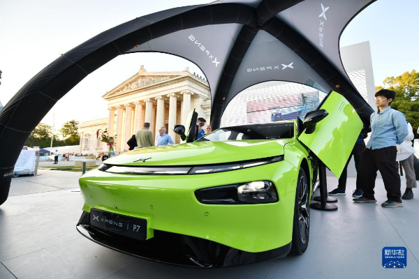 9月5日,人們?cè)诘聡?guó)慕尼黑國(guó)際車展的城市公共展示區(qū)參觀小鵬汽車。