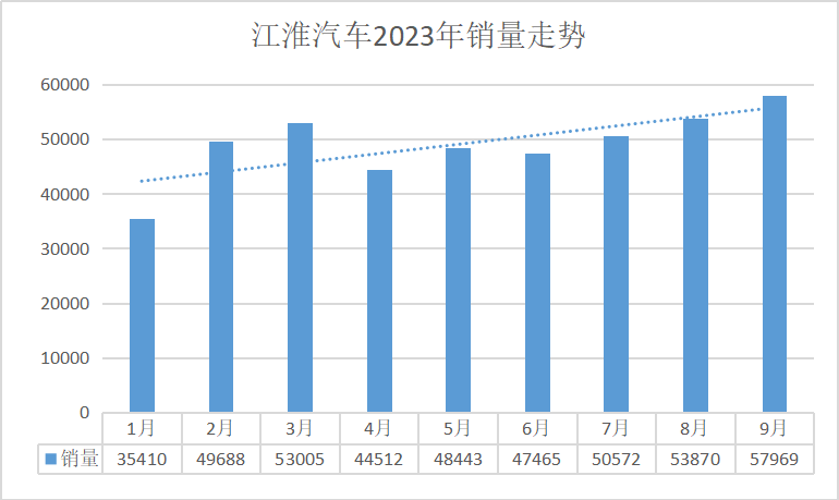 2023年10月10日,安徽江淮汽車集團(tuán)股份有限公司(以下簡(jiǎn)稱“江淮汽車”)發(fā)布《安徽江淮汽車集團(tuán)股份有限公司2023年9月產(chǎn)、銷快報(bào)》??靾?bào)顯示:2023年9月,江淮汽車銷量為5.80萬(wàn)輛,同比增長(zhǎng)21.59%,連續(xù)8個(gè)月實(shí)現(xiàn)同比正增長(zhǎng);1-9月累計(jì)銷售44.12萬(wàn)輛,同比增長(zhǎng)18.70%。