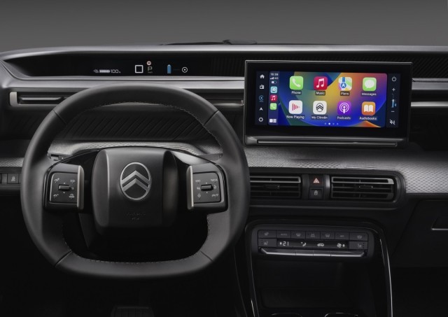 全新雪鐵龍e-C3內(nèi)部采用較為簡約的設(shè)計風(fēng)格,數(shù)字儀表搭配懸浮式中控屏幕和雙輻式多功能方向盤科技感、實用性較強。此外,該車還保留了中控臺空調(diào)控制區(qū)域的實體按鍵,并支持Apple CarPlay等互聯(lián)功能。動力方面,新車搭載一臺最大功率83千瓦的輸出電機,并匹配44千瓦時電池組,純電續(xù)航里程可達320公里,并且還支持最高100千瓦的快充功能。