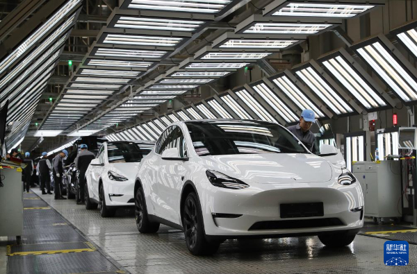 2023年12月22日,在特斯拉上海超級工廠內(nèi),工人在對出廠前的車輛進(jìn)行漆面及門窗檢測。新華社記者方喆攝