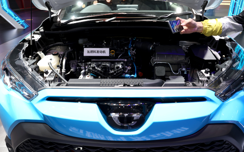 (資料圖片)豐田汽車公司在2023年上海國際車展展出的氫能源汽車的發(fā)動機。新華社記者 陳建力 攝
