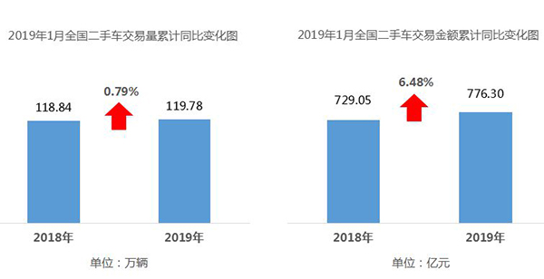 與新車不同,1月的二手車市場(chǎng)雖然環(huán)比依然延續(xù)下滑態(tài)勢(shì),但是同比的小幅上漲,卻也傳遞出較好的市場(chǎng)訊號(hào)。1月,全國(guó)二手車市場(chǎng)交易量119.78萬輛,環(huán)比下降1.59%,同比小幅上漲0.79%,交易金額776.30億元。