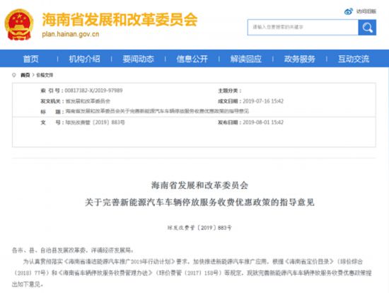 8月1日,海南省發(fā)展和改革委員會發(fā)布《關于完善新能源汽車車輛停放服務收費優(yōu)惠政策的指導意見》(以下簡稱《意見》),提出一系列指向清晰的指導意見。據(jù)此,海南年內(nèi)將出臺新能源汽車車輛停放服務收費優(yōu)惠政策,不僅比燃油汽車停車收費優(yōu)惠,而且新能源汽車在公共區(qū)域停車還將免費。