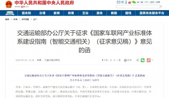 同日,交通運(yùn)輸部公開發(fā)函,廣泛征求對(duì)《國(guó)家車聯(lián)網(wǎng)產(chǎn)業(yè)標(biāo)準(zhǔn)體系建設(shè)指南(智能交通相關(guān))(征求意見(jiàn)稿)》(以下簡(jiǎn)稱《征求意見(jiàn)稿》)的意見(jiàn)。其中,對(duì)進(jìn)一步明確標(biāo)準(zhǔn)制修訂重點(diǎn),以及形成統(tǒng)一、協(xié)調(diào)的國(guó)家車聯(lián)網(wǎng)產(chǎn)業(yè)標(biāo)準(zhǔn)體系架構(gòu)作出部署。