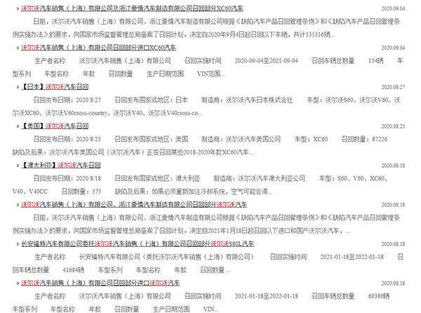 日前,沃爾沃汽車銷售(上海)有限公司,浙江豪情汽車制造有限公司根據(jù)《缺陷汽車產(chǎn)品召回管理條例》和《缺陷汽車產(chǎn)品召回管理條例實施辦法》的要求,向國家市場監(jiān)督管理總局備案了召回計劃。決定自2020年9月4日起召回以下車輛,共計135316輛。