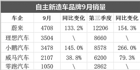無論口水怎么戰(zhàn),銷量是檢驗(yàn)口舌的最好工具。今年9月,造車新勢(shì)力們的表現(xiàn)令人刮目相看。9月造車新勢(shì)力總計(jì)銷量超過14000輛,相比8月份漲了一倍還多,9月銷量可以用“暴增”來形容也一點(diǎn)不為過。蔚來暫處桿位,9月銷量為4708輛,第三季度共實(shí)現(xiàn)銷量12206輛,成為造車新勢(shì)力今年以來首個(gè)銷量破萬車企。
