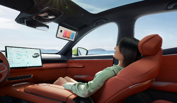 配置上,深藍(lán)S7搭載前排雙零重力按摩座椅,15.6英寸向日葵屏幕具有左右各15°的旋轉(zhuǎn)功能。智能模式下,顯示屏隨場景偏轉(zhuǎn),可實(shí)現(xiàn)迎送賓場景。副駕區(qū)域創(chuàng)新性配備12.3英寸超感智慧屏,可配合副駕零重力座椅的傾斜角度調(diào)整,方便副駕乘員以舒適的躺姿觀看屏幕播放內(nèi)容,放松身心。除此之外,深藍(lán)S7還搭載高通8155芯片車機(jī)系統(tǒng)、AR?HUD全息式增強(qiáng)現(xiàn)實(shí)系統(tǒng)、3D全息人臉登錄等高價(jià)值配置。