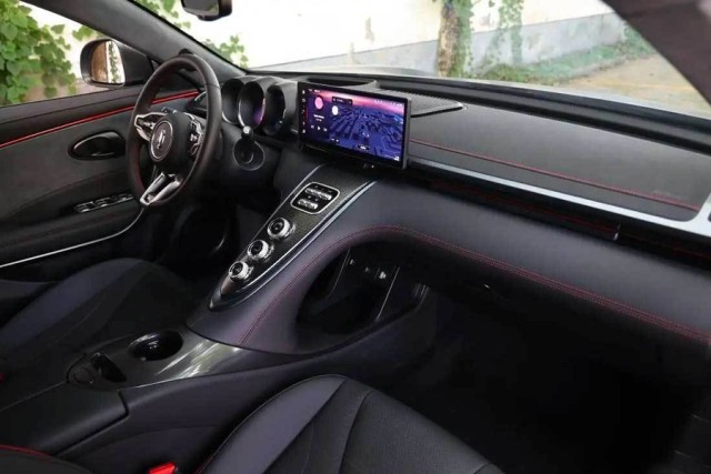新車的內(nèi)飾通過大面積的黑色來與外觀相呼應(yīng),并且通過紅色的縫線進行點綴,進一步提升視覺效果。三圓形的儀表盤同樣有著較強的復古風,中間位置一塊懸浮式的中控大屏則將實用拉滿。