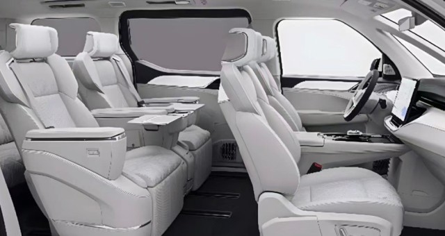 新車內(nèi)部依舊采用較為簡約的設計風格,并配備大尺寸懸浮式中控屏幕。與此同時,沃爾沃EM90的第二排采用支持多項電動調(diào)節(jié)且?guī)в型韧泻托∽腊宓莫毩⒑娇兆?。另外,該車配備包含座椅頭枕內(nèi)置揚聲器在內(nèi)的共21揚聲器寶華韋健音響系統(tǒng),總功率達到2460W,并且還標配沃爾沃汽車獨有的空氣凈化技術(shù),其配備高效空調(diào)濾芯和主動式空氣凈化技術(shù),可清除高達95%的PM2.5顆粒物。