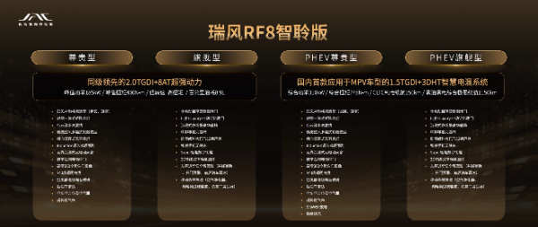 本次廣州車展,江淮瑞風(fēng)現(xiàn)場首發(fā)瑞風(fēng)RF8智聆版,涵蓋燃油與PHEV插混四款車型。PHEV旗艦型,預(yù)售價格為23.99萬;PHEV尊貴型,預(yù)售價格21.99萬;燃油旗艦型,預(yù)售價格18.99萬;燃油尊貴型,預(yù)售價格16.99萬。