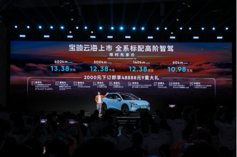 央廣網北京9月11日消息(記者 姜鵬)9月10日,上汽通用五菱汽車旗下寶駿品牌首款智能長續(xù)航SUV寶駿云海上市,新車提供60km插混版、140km插混版、500km純電版、600km純電版共4款配置,限時先享指導價為10.98萬元-13.38萬元(僅限2024年11月1日前完成大定鎖單的用戶)。