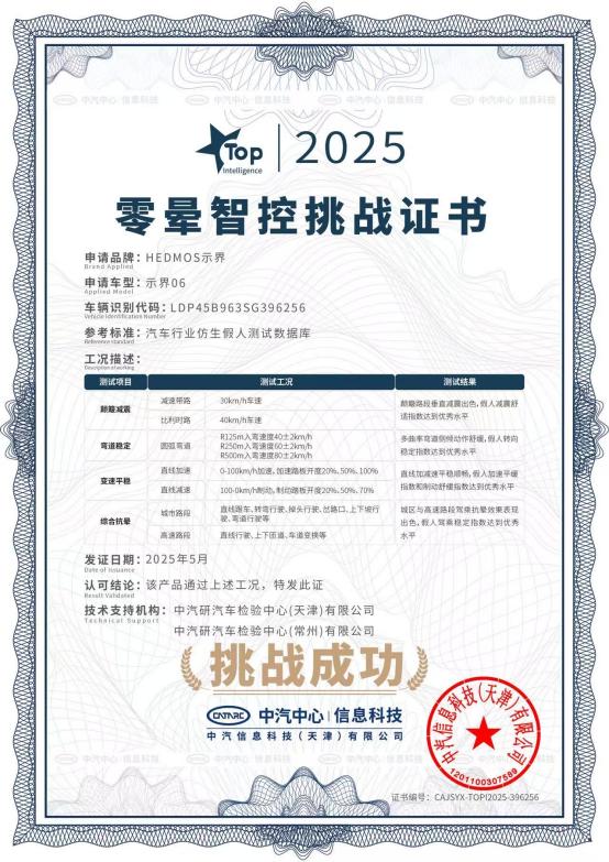 近期,在行業(yè)首次的暈動仿生假人零暈智控挑戰(zhàn)中,示界06展現(xiàn)了優(yōu)異的駕控表現(xiàn)。中國汽車研究中心有限公司高級工程師趙博文在發(fā)布會現(xiàn)場公布測試數(shù)據(jù)時(shí)指出:“通過精準(zhǔn)的電機(jī)扭矩動態(tài)分配、法系底盤調(diào)?;?,以及搭載的‘零暈智控’技術(shù)體系,示界06在六維駕控測試中表現(xiàn)出行業(yè)優(yōu)秀水平。”測試結(jié)果顯示,示界06完美實(shí)現(xiàn)了“6不”卓越體驗(yàn):簸路不顛、彎道不飄、加速不竄、減速不抖、駕乘不暈、長途不累,為行業(yè)樹立了駕乘舒適新標(biāo)桿。