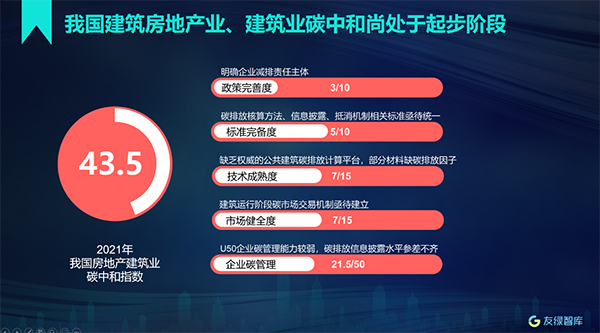 日前,由友綠智庫主辦的2021房地產(chǎn)建筑業(yè)碳中和指數(shù)暨2021《中國綠色地產(chǎn)發(fā)展報(bào)告》發(fā)布會在京舉行。會議深度解讀了房地產(chǎn)建筑業(yè)在“雙碳”領(lǐng)域的政策、技術(shù)、標(biāo)準(zhǔn)、市場和企業(yè)的應(yīng)對之策。