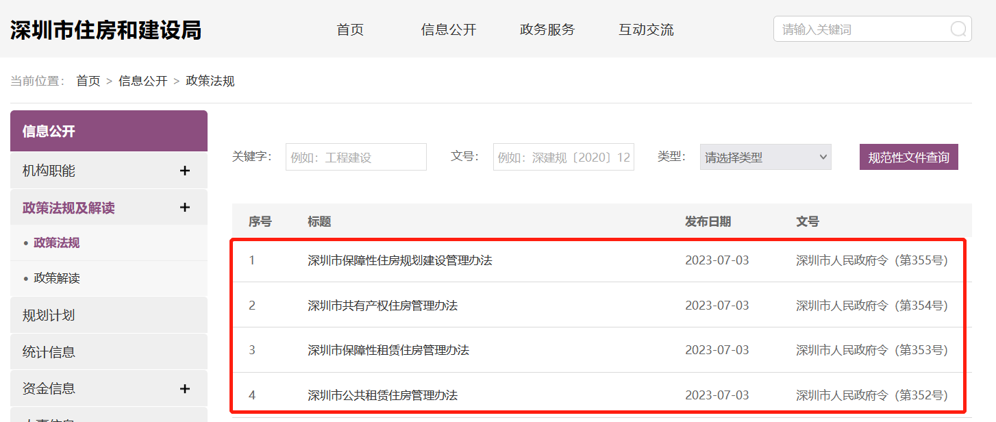 央廣網(wǎng)北京7月5日消息 據(jù)深圳市住房和建設(shè)局網(wǎng)站消息,7月3日,深圳市住建局發(fā)布《深圳市公共租賃住房管理辦法》《深圳市保障性租賃住房管理辦法》《深圳市共有產(chǎn)權(quán)住房管理辦法》《深圳市保障性住房規(guī)劃建設(shè)管理辦法》,具體來看,上述四項(xiàng)管理辦法,分別對(duì)公共租賃住房、共有產(chǎn)權(quán)住房、保障性租賃住房等三類住房的保障對(duì)象、申請(qǐng)條件、供應(yīng)分配方式、租售價(jià)格標(biāo)準(zhǔn)、用地保障、建設(shè)籌集主體和渠道、建設(shè)標(biāo)準(zhǔn)、監(jiān)督管理等進(jìn)行了規(guī)范。四項(xiàng)管理辦法將于8月1日正式實(shí)施。