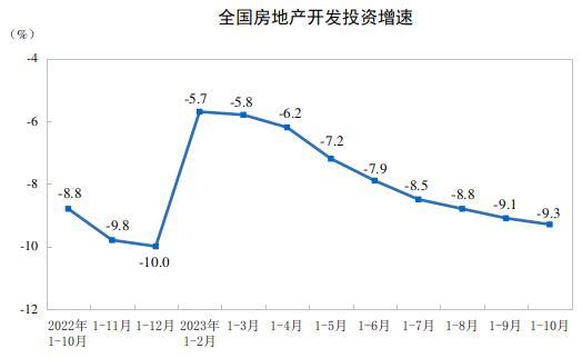 1—10月份,全國(guó)房地產(chǎn)開發(fā)投資95922億元,同比下降9.3%(按可比口徑計(jì)算,詳見附注6);其中,住宅投資72799億元,下降8.8%。