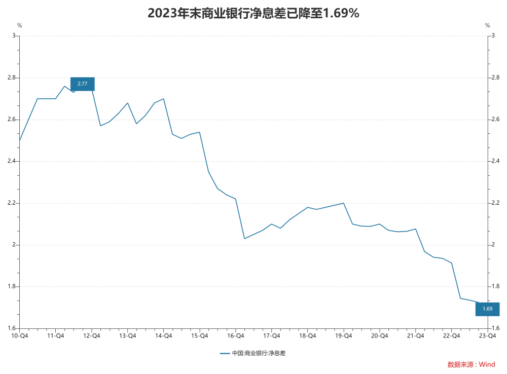 王青認(rèn)為,2023年末商業(yè)銀行凈息差已降至1.69%,首次跌破1.7%關(guān)口,且突破了《合格審慎評(píng)估實(shí)施辦法(2023年修訂版)》中自律機(jī)制合意凈息差1.8%的臨界值。