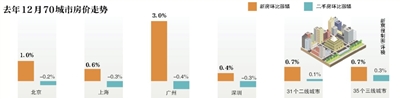 1月16日,國家統(tǒng)計局發(fā)布的70城市房價數(shù)據(jù)顯示,去年12月一線城市新建商品住宅銷售價格環(huán)比漲幅擴大。一線城市新房價格環(huán)比逆勢而上主要源于廣州表現(xiàn)搶眼,廣州以3%的環(huán)比漲幅領(lǐng)跑全國。