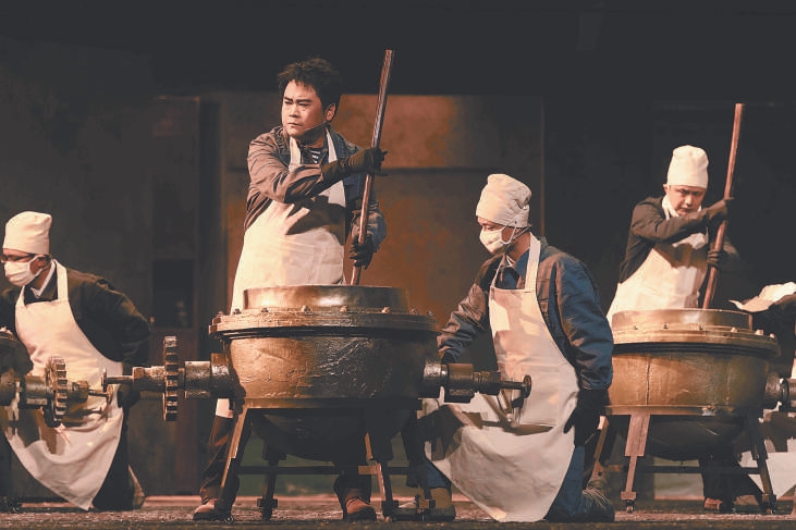 與歌劇跌宕的劇情相匹配,作曲家唐建平也創(chuàng)作了極具戲劇張力的音樂(lè)。全劇既有不少充滿挑戰(zhàn)的高音唱段,也有充滿“氛圍感”的旋律。221沒(méi)有合適的炸藥合成設(shè)備,工作人員就用人工土法攪拌,小危險(xiǎn)不時(shí)發(fā)生,這時(shí)的音樂(lè)充滿懸疑感,緊扣心弦。唐建平還在劇中融入了當(dāng)?shù)匾魳?lè)元素,上半場(chǎng)音樂(lè)由藏族民歌引入,下半場(chǎng)則由青?;▋洪_啟,而在劇中的聯(lián)歡會(huì)上,藏族風(fēng)格的音樂(lè)元素不時(shí)響起,也為梁振道與女友的意外相遇鋪墊了情緒。
