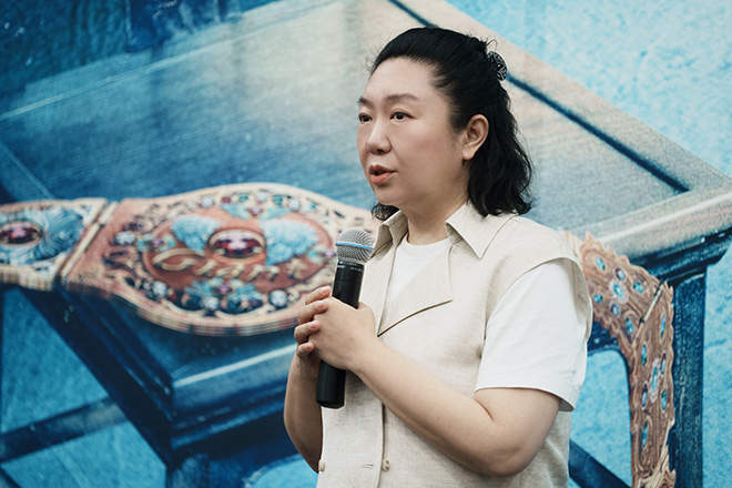 談到話劇《搭手飛人》,她稱這部作品是中國國家話劇院守中華傳統(tǒng)文化之正,創(chuàng)意時代表達之新的作品?!皬膭≈械膫b義精神、武林規(guī)矩來談中華民族道德層面上的精神和智慧,重情重義、守正守信、獨立自強。通過這部劇,看懂中國人,做人行事的人文特質和自覺意識,這種自覺,是高妙的智慧,是古老大國‘天人合一’的高維思想,庚續(xù)下來的‘中國自覺’。這部劇講述武林故事,也探討中國精神。期待在浩峰導演、呂波導演的舞臺構想中,讓觀眾沉浸武林,認知中國。”