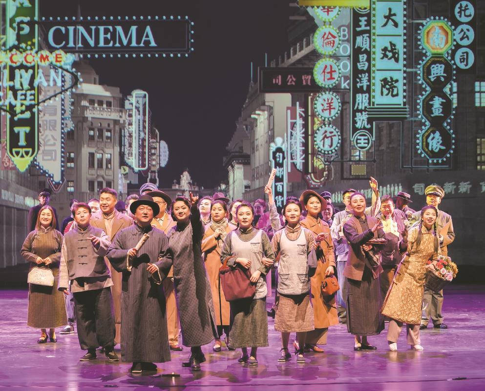 原創(chuàng)民族歌劇《義勇軍進行曲》聚焦風云時代下,以田漢、聶耳、夏衍、司徒慧敏、許幸之等為代表的左翼文藝工作者在上海創(chuàng)作出電影《風云兒女》及其主題曲《義勇軍進行曲》的故事。郭天來攝
