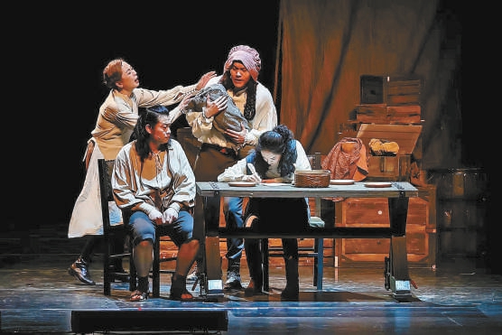 與16世紀(jì)“大航?!睍r(shí)代主題相扣,《威廉與我》的舞臺(tái)散發(fā)著復(fù)古氣息。巧妙多變的裝置設(shè)計(jì),融合了古典與當(dāng)代,既像一座微型劇場,又像一艘航行大船,還像一頂恢宏皇冠,也像一處囚籠刑場。劇中四位優(yōu)秀演員,以幽默詼諧、靈氣詩意、舉重若輕、跳進(jìn)跳出的表演和身份轉(zhuǎn)換,分別扮演莎士比亞的童年、青年、中年、老年和其他30多個(gè)角色,在有限的時(shí)空中,用無限的想象力和表現(xiàn)力,將這位傳奇劇作家一生中的重要事件及作品創(chuàng)作情況串聯(lián)起來,演繹出他所處時(shí)代的風(fēng)云變幻及其動(dòng)蕩漂泊的復(fù)雜一生。