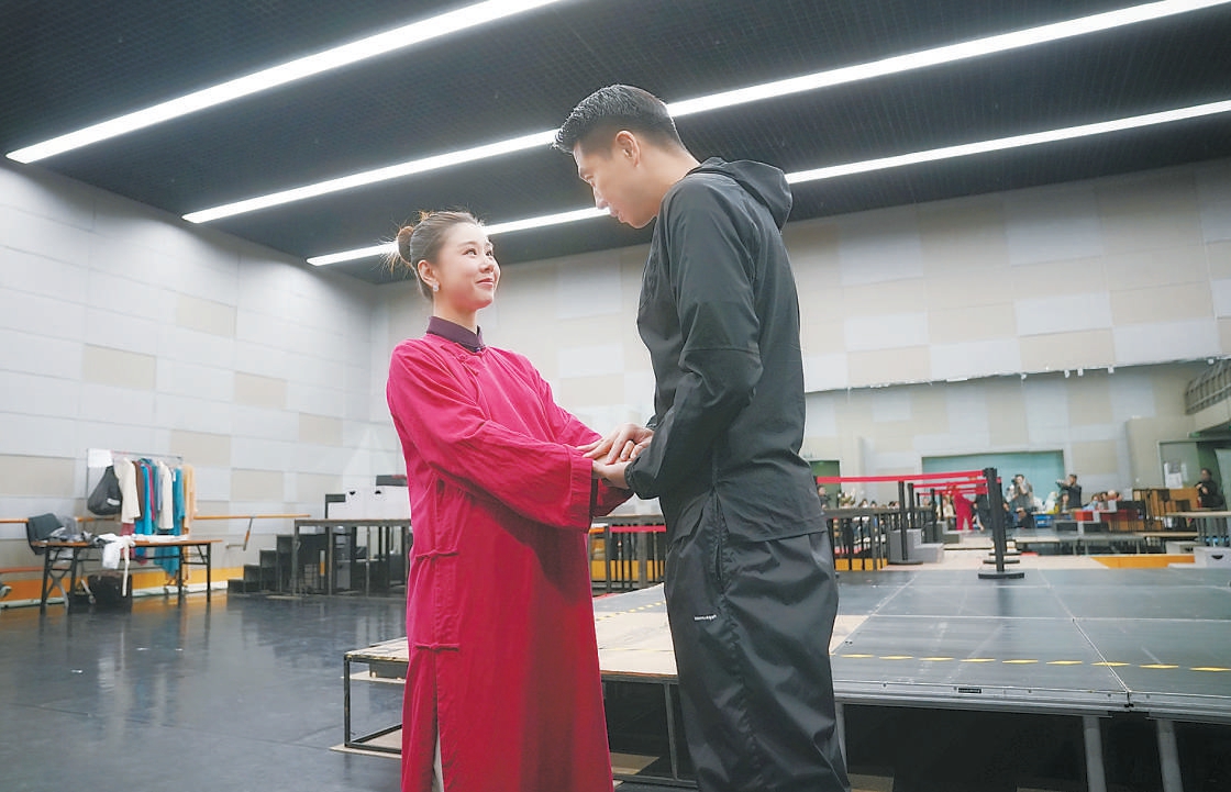 層疊的階梯、平臺把排練廳分割出高低錯落的空間,演員們穿行其間,走位自然帶上了一種落差感——這如同對主角鄧世昌心境的暗喻。“如果說《林則徐》講述的是幾位能左右國家命運的大人物的斗爭,那么《鄧世昌》就像一個人的戰(zhàn)爭。”執(zhí)導(dǎo)兩部作品的導(dǎo)演王筱頔說。